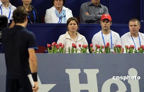 費德勒的女友米爾卡(前排右三)到上海網(wǎng)球大師杯現(xiàn)場為這位瑞典“天王”加油助陣。