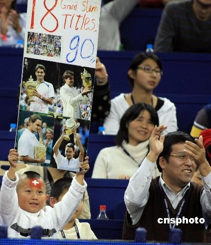 圖為上!靶≠M迷”為費德勒吶喊助威。中新社發(fā) 湯彥俊 攝