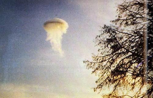 1974年11月17日早晨,勞爾森帶著他的愛犬在丹麥日德蘭半島散步,突然看到一團(tuán)白云里裹著一個(gè)外形奇特的物體。他在距離這個(gè)物體飛到大約250到300米遠(yuǎn)的地方時(shí)拍下了這張照片。