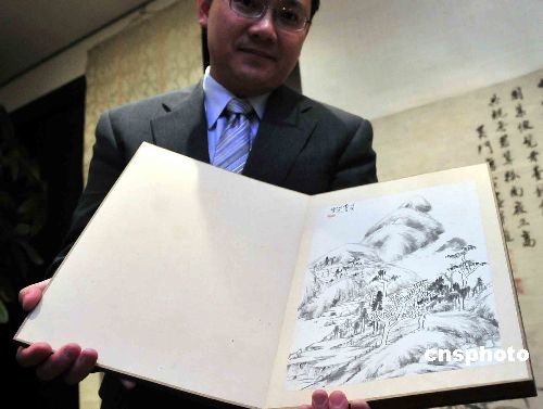 圖為預(yù)料成交價(jià)超過三千萬港元的《八大山人 山青水碧鳥語花香》水墨畫冊。