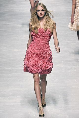 在08秋冬的T臺上,設計師們注重在面料上創(chuàng)造出極富肌理質(zhì)感的細節(jié)來裝飾服裝。一件細碎褶皺裝飾的粉色連身裙看起來那么與眾不同,而這正是因為這種富有結構紋路的面料能帶來神奇的三維立體效果的原因。編輯精選出十件本季富含此趨勢的單品為你扮美提供更多的選擇。