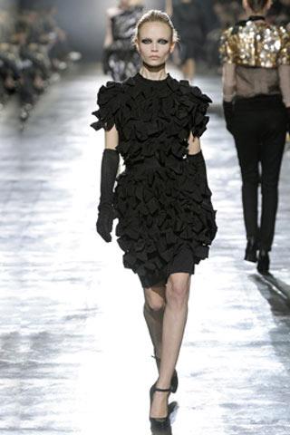 對(duì)經(jīng)典“小黑裙”的挑戰(zhàn),一直是設(shè)計(jì)師修行道路上的必修課,Lanvin這條裙子的款式是再經(jīng)典不過(guò)的基本款,卻因大量如蝴蝶花瓣般的裝飾物而變的豐富起來(lái)。