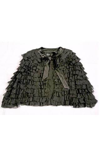 層疊的薄紗荷葉邊會在微風(fēng)吹起的瞬間泛起無數(shù)漣漪,這讓神秘的黑色斗篷充滿爛漫的味道。不要被堆疊的體積感所影響,這件D&G實(shí)屬輕薄的動感單品。