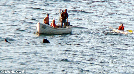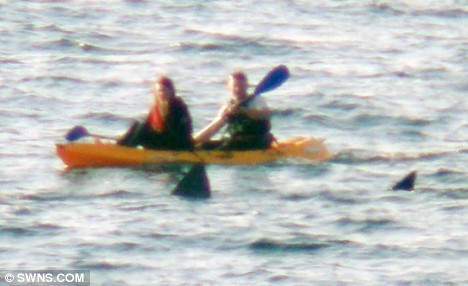 中新網(wǎng)6月4日電 據(jù)英國媒體報(bào)道,英國一群游客日前在康沃爾一處海上劃船時(shí),意外遭到數(shù)只巨大鯊魚包圍,所幸他們保持鎮(zhèn)定,鯊魚感到?jīng)]有威脅后,默默離他們遠(yuǎn)去。