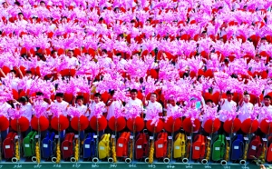 今年國慶廣場背景翻花表演中,有近900名學(xué)生來自北京四中。在這些演出主力軍中,還穿插著23名替補(bǔ)隊(duì)員。他們將為信號盲區(qū)傳遞信號,同時(shí)頂替臨時(shí)缺席的學(xué)生。據(jù)了解,每個(gè)替補(bǔ)隊(duì)員要負(fù)責(zé)所轄區(qū)域內(nèi)的100人的情況。事實(shí)上,這些被稱作替補(bǔ)隊(duì)員的學(xué)生必須熟悉轄區(qū)內(nèi)每個(gè)隊(duì)員的翻花動(dòng)作,承擔(dān)著“精英隊(duì)員”的任務(wù)。