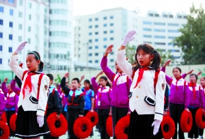 國慶慶典背景表演中,位于中心區(qū)的翻花表演,以及廣場最前端的七色光表演方陣均以學(xué)生為主。昨日,記者走訪了部分參演學(xué)校,了解了表演中的一些細(xì)節(jié)。(記者溫薷)