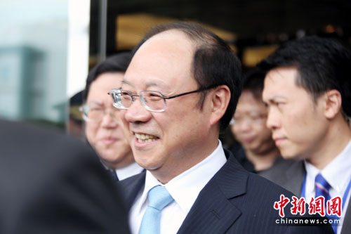 鄭立中向在場守候的兩岸媒體記者微笑招手致意,不過未發(fā)表談話。海協(xié)會其他成員李亞飛、徐莽、馬曉光、張勝林等也同機(jī)抵達(dá)。