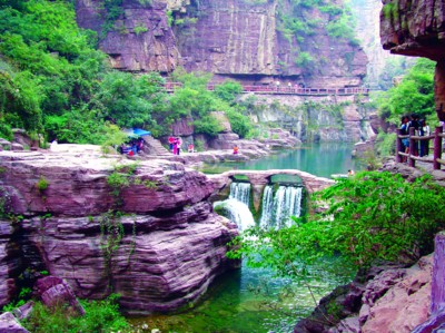 8億年前,云臺山還是汪洋一片,氣候和現在的東南亞一樣。今天的云臺山已經變成了氣勢磅礴的地質公園。有意思的是,云臺山不僅有各種各樣的巖石山,還有泉、瀑、潭。稍有平坦之地,便有各種果樹,可以隨手摘棗子、山葡萄、柿子、石榴……
