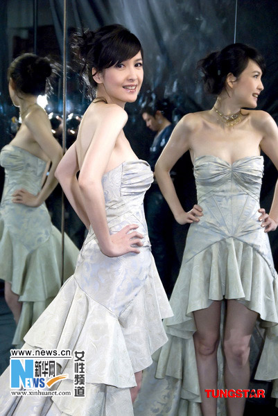 要配合“舞會焦點”的主題,一襲舞會晚裝當(dāng)然是必備。著名時裝設(shè)計師Henry Lau為周慧敏度身訂造的晚裝,是古典宮廷禮服及現(xiàn)代簡約晚裝的融合,高貴典雅且性感迷人,上身的貼身低胸束衣剪裁細(xì)膩,完全展現(xiàn)周慧敏的腰臀曲線;而下身的短裙設(shè)計能突出雙腿的線條美,加上拖尾裙擺更顯高貴華麗。整件晚裝更用上Henry特別從倫敦收集回來的古董布匹縫制而成,份外珍貴;而由于繡上金線花紋圖案的布料較重,整件晚裝重達(dá)15磅。