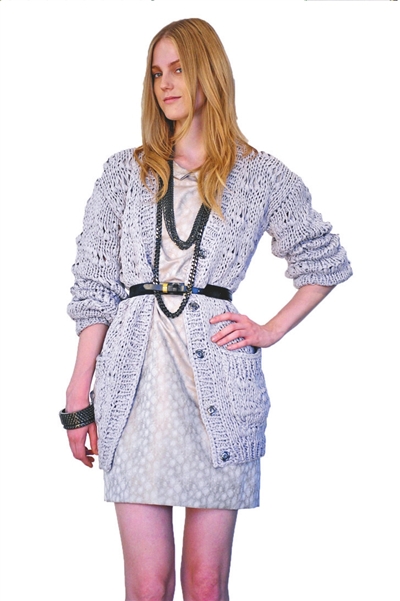 。牬送,將棒針針織與雪紡或起毛皮革等不同面料進行搭配,可讓針織衫呈現(xiàn)全新的表情。由于棒針毛衣帶給人本身已經(jīng)很狂野了,所以在色彩的選擇上以黑色、茶色和紅色為主,雖說流行,但也有人一穿這種灰暗的顏色就顯得老土,怎么辦呢?這就要靠值得玩味的細節(jié)了。比如抽帶、細皮條和大紐扣……(舒志娟)