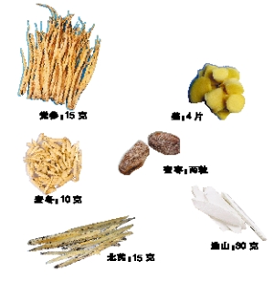黨參是常用的補(bǔ)氣中藥,具補(bǔ)中益氣、和胃養(yǎng)血等功效,最宜用于平素倦怠乏力,精神不振,自覺氣短,稍一活動就喘促的氣虛患者,由于補(bǔ)氣也有助于生血,所以黨參也適用于氣血兩虛面色蒼白,頭昏眼花,胃口不好,大便稀軟,容易感冒的病人。黨參含有多糖、葡萄糖、果糖、菊糖、蔗糖、磷酸鹽和17種氨基酸,其中包括賴氨酸等7種人體不能合成的必需氨基酸,此外還含皂甙、揮發(fā)油、脂肪和鉀、鈉、鎂、鋅、銅、鐵等14種元素,這些都是黨參作為補(bǔ)益藥的物質(zhì)基礎(chǔ)。