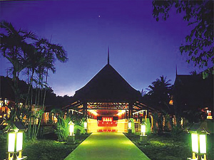 穿梭在“月之影”,你會有一種時光停滯的感覺,棕黑色的木柱和白色的基座相互輝映,構成了一種古樸的格調,那是一種懷舊的情緒,又滲透著一絲迷人的高貴。據說,度假村的木材全都取自這個島上,特別耐用,是一種非常珍貴的木料。雖然已經是一個聞名于世的度假勝地,但是月之影仍然恪守著最傳統的馬來習俗。每天上午11點左右,島上就會出現一群穿著當地傳統服裝的人,走在前排的人捧著手鼓,中間的人舉著彩帶纏繞的樹枝,后面的人捧著水罐,唱著歌繞“月之影”走一圈。這是他們每天要為島上的SPA進行的一個引水祈福儀式。