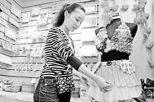 “安全套有招財(cái)保平安的作用!睜I(yíng)業(yè)員胡小姐稱,這些安全套飾品價(jià)格從十幾元到幾十元不等,開業(yè)初,顧客以為是情趣店,不敢進(jìn)來,后來掛出飾品的招牌才使得顧客慢慢接受,經(jīng)常來光顧的大部分是90后。她還稱,全國(guó)很多城市都有安全套首飾店,生意很火爆。10月23日,記者通過電話聯(lián)系到首飾店老板,對(duì)方稱,制作飾品的安全套全部都是中國(guó)臺(tái)灣和日本生產(chǎn)的。