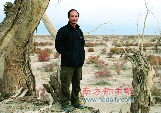 在塔里木河中游的古村草湖鄉(xiāng),沿途有著成片的原始胡楊林,樹林倒影在湖水之中,景色很迷人。林偉生以前經(jīng)常去拍胡楊林,這次來到這么個好地方,而且不是旅游景點,更加沉醉。