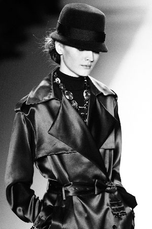 中性風(fēng)格的簡(jiǎn)約版淺口禮帽是今冬最熱門(mén)之選,很“百搭”,幾乎可以搭配不同風(fēng)格的時(shí)裝。和呢子大衣、小西服等線條硬朗的服裝在一起,帥氣颯爽;和女性風(fēng)格濃郁的雪紡裙、短裙等搭配,刻意拉大的反差也很吸引眼球,最好配上可愛(ài)感十足的彩襪,更是有另一番的風(fēng)情。 (巫倩姿)