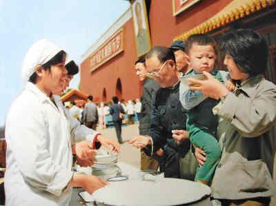 1981年,天安門前能喝到兩分錢一碗的大碗茶。徐建中攝