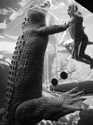最近,澳大利亞達(dá)爾文市中心一家主題公園新開(kāi)設(shè)項(xiàng)目“死亡之籠”,迎合愛(ài)冒險(xiǎn)游客的心理。游客被關(guān)在一個(gè)透明籠中,與籠子一同沉入生活著兇猛咸水鱷的水池中,近距離體驗(yàn)“與鱷共舞”的感受。