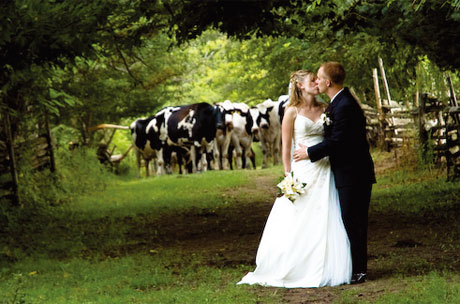 在綠野仙蹤農(nóng)場(chǎng),婚禮和會(huì)議的租金占到了農(nóng)場(chǎng)年收入的一半。其實(shí)在農(nóng)場(chǎng)舉辦婚禮不完全是新事物,20 年前的葡萄酒熱潮引發(fā)了葡萄園婚禮,而近年興起的環(huán)保運(yùn)動(dòng)、有機(jī)和地方產(chǎn)品更加使農(nóng)場(chǎng)成為誓言的理想地點(diǎn)。不過(guò)農(nóng)場(chǎng)婚禮不一定適合每對(duì)新人,因?yàn)樾氯吮仨殤?yīng)對(duì)一些農(nóng)村簡(jiǎn)陋設(shè)施的挑戰(zhàn),比如不穩(wěn)定的電力供應(yīng)和不通暢的下水管道,以及偶爾失控的雞或豬,更不要提蝙蝠了。但正如南加州哈蘭德溪農(nóng)場(chǎng)主人朱迪•萊斯勒說(shuō)的:“如果你想要一切運(yùn)轉(zhuǎn)得完全精確,我不建議你們來(lái)這里。農(nóng)場(chǎng)婚禮只適合喜歡戶外活動(dòng)、浪漫和愿意靈活調(diào)節(jié)計(jì)劃的新人!