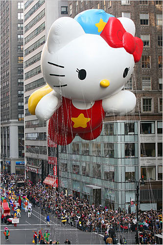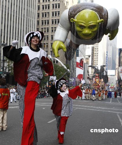 洛杉磯的小姑娘打扮成花季天使,和父母親一起參加十一月下旬的感恩節(jié)歡慶活動(dòng)。感恩節(jié)連日長假,是每年美國人最重要的娛樂購物節(jié)慶之一。07年美國紐約在當(dāng)?shù)貢r(shí)間22日舉行了感恩節(jié)大游行,萬人參加場(chǎng)面熱烈。巨型卡通造型的氣球吸引了很多人?偣灿11個(gè)大氣球加入游行,其中包括在天上飄的凱蒂貓,吸引現(xiàn)場(chǎng)所有人的目光,多達(dá)800名小丑和11支樂隊(duì),以及2000名拉拉隊(duì)員和舞者,將整個(gè)游行氣氛推向高潮。 一位紐約市民幽默的說:“我喜歡的是最后會(huì)出現(xiàn)的耶誕老人,因?yàn)檫@樣我們可以趕快離開,然后回家開始吃火雞!”