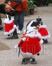 中新網(wǎng)12月10日電 日本松江市的花鳥天地“松江佛蓋爾花鳥世界公園”日前迎來了一群穿著大紅圣誕老人裝的企鵝。游客們對著走路搖搖晃晃的企鵝直呼“可愛”,圣誕氣氛格外濃厚。