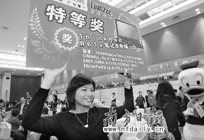 參加旅游還中了大獎(jiǎng),周小姐興奮地舉起了獎(jiǎng)品牌留影。吳偉洪攝