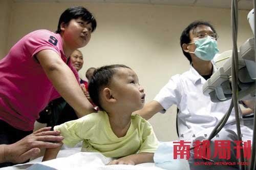 2008年9月17日,武漢市兒童醫(yī)院,近百位家長帶著孩子到醫(yī)院做B超體檢。1歲10個月大的楊凱清小朋友喝了5個月三鹿奶粉