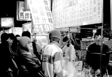 先有廟后有市,臺北最古老的幾個夜市都是如此。但臺灣夜市的真正繁榮,還要追溯到上個世紀70年代的石油禁運危機。就像如今席卷全球的金融危機一樣,當時西方國家一片愁云慘淡,紛紛取消訂單,依賴出口的臺灣大受打擊,外銷廠商吃盡苦頭,紛紛倒閉。為了求生存,尋找東山再起的機會,自然而然,出口轉內(nèi)銷,把退貨拿到夜市地攤大拍賣,沒想到大受歡迎,從此,吃喝之余,逛夜市買外銷退貨品、仿冒品,就成了臺灣人乃至外地游客的一大樂趣。