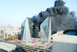 “轟”的一聲,一股黑色濃煙從樓頂騰空而起,“像大樓爆破一樣!币幻繐舻某鲎廛囁緳C介紹說,當時他正開車經(jīng)過樂成國際購物中心,隨著一聲炸響,購物中心三樓頂層的設備間起火,四周的隔板都隨著顫動,火苗也從擋板縫隙往外躥,“我開車到了廣渠門內(nèi),還能看見濃煙。”
