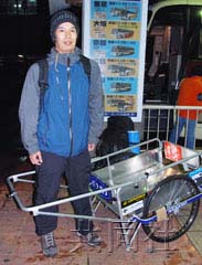 吉田表示“希望能遇到巴士旅行不能到達(dá)的偏僻地方的人們”。于是他選擇了徒步,帳篷和便攜式火爐等裝備重達(dá)約50公斤,塞不進(jìn)雙肩包里,因此準(zhǔn)備了一臺(tái)手拉車。