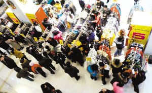記者了解到,去年元旦北京百貨商場(chǎng)銷(xiāo)售增長(zhǎng)20%多,今年受金融危機(jī)等因素影響增幅有所下降。今年元旦期間,北京商場(chǎng)都加大了折扣促銷(xiāo)力度,服裝普遍在6折以下。記者前日在甘家口商場(chǎng)看到,全場(chǎng)商品都在進(jìn)行滿99減50的活動(dòng),耐克、衣戀等平日里很少打折的品牌專(zhuān)賣(mài)店內(nèi),擠滿了消費(fèi)者。耐克專(zhuān)區(qū)的相關(guān)負(fù)責(zé)人告訴記者,“往常只有在折扣店才有對(duì)折的優(yōu)惠,今年是頭一次”。另外,中關(guān)村購(gòu)物廣場(chǎng)等商場(chǎng)的化妝品也參與了商場(chǎng)“滿減”活動(dòng)。