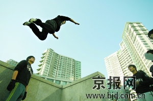 從去年年底開(kāi)始,關(guān)于這項(xiàng)另類運(yùn)動(dòng)的視頻開(kāi)始風(fēng)靡所有論壇。在視頻中,跑酷者非常流暢地奔跑,遇到圍墻就兩腳一蹬翻過(guò)去,從四五米高的地方跳下時(shí)就地一滾繼續(xù)前進(jìn),從一根欄桿跳到兩三米外的另一根欄桿,能穩(wěn)穩(wěn)地站在上面。這項(xiàng)運(yùn)動(dòng)在上世紀(jì)90年代興起于法國(guó)巴黎,迅速被各國(guó)年輕人所接受,去年9月份,倫敦舉辦了世界首個(gè)全球跑酷錦標(biāo)賽。