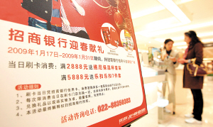 今年春節(jié),幾乎各家銀行都推出了刷卡消費(fèi)贈(zèng)送獎(jiǎng)品的活動(dòng),市民不妨有計(jì)劃地多用用自己手里的銀行卡,春節(jié)過后說不定就能獲得意想不到的大獎(jiǎng)了。(記者 王婷)