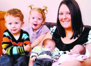 英國樸次茅斯市22歲母親卡莉·奧布賴恩和28歲男友約翰·格朗特在一起生活時(shí),為了避孕她幾乎每天都堅(jiān)持服用避孕藥?闪羁ɡ蜃鰤粢矝]想到的是,避孕藥非但對她毫無效果,并且她還在兩年時(shí)間中接連生下了兩組可愛的雙胞胎!
