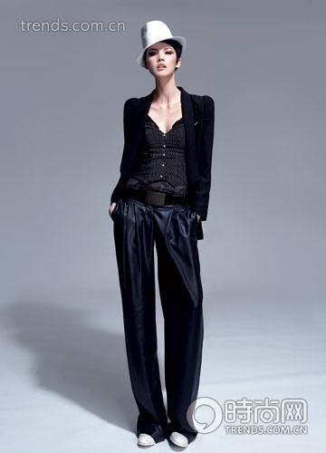 全黑色系的衣裝組合與白色配件的輔助,是中性感內(nèi)衣外穿的最I(lǐng)N組合。