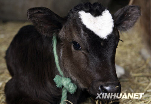 日本神奈川縣藤澤市一頭出生不久的小牛犢因額頭正中有一個(gè)規(guī)則的心形圖案而在牛年情人節(jié)到來前成為媒體競(jìng)相追逐的對(duì)象。