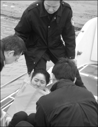 獲救女子上船后奄奄一息,口吐鮮血,不能說話,民警用艇上的干衣服給她取暖。巡邏艇馬上駛向最近的大橋邊,鄂州市120醫(yī)護人員已在碼頭等候,女子被送往鄂州市中心醫(yī)院搶救。警方隨后擴大搜尋到長江下游7000米遠的浠水巴河水域,沒有找到失蹤的男子。