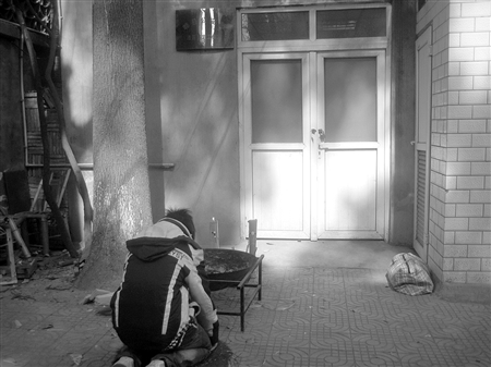 昨日春光燦爛,肖林親友們卻沒心情享受美景,他們齊齊來到烈士陵園等待法醫(yī)鑒定的結(jié)果。法醫(yī)鑒定工作室門外,燃著兩根紅燭,擺了臺供燒紙錢的鐵鍋,一名身著運(yùn)動服的少年朝屋里躬身行禮,然后長跪在草墊上淚流滿面。他是肖林的兒子肖理,年僅15歲。僅在一夜之間,他就不得不面對突然失去父親的現(xiàn)實(shí)。