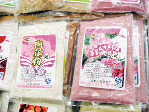 些敷臉的粉末不在護(hù)膚品分類中出現(xiàn),而是在超市的面粉區(qū)域銷售,也有近百種之多,將水果、蔬菜以及堅(jiān)果的提取物同面粉結(jié)合,這樣的粉可以用溫水調(diào)和,用小火或微波爐煮制食用,也可以加蛋清或蜂蜜敷臉,其實(shí)喜歡DIY面膜的女士們一定知道,用蛋黃混合面粉而成的面膜薄薄地涂在臉上,可滋潤(rùn)皮膚。只不過(guò)現(xiàn)在我們食用的面粉可以用這些特殊的面粉代替了,會(huì)有更多的功效在里面,比如美白、抗敏、排毒等功效。可選擇的有杏仁粉、枸杞粉、玫瑰花粉、苦瓜粉、淮山粉、薏仁粉、檸檬粉、蘆薈粉、白芷粉、紅豆粉、綠豆粉、杜鵑花粉、黑木耳粉、荷葉粉等等。70克一小袋兒要花費(fèi)近17元,顯然敷臉比食用更劃算些。(文/攝 孫小雅)