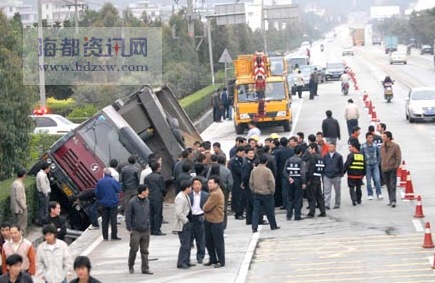 昨天下午4時19分,324國道59公里+200米處(福清上逕段),一部車牌號為“閩A75427”的大型運沙車由福州往廈門方向行駛中,與停在同向的一輛客車刮碰后,撞向路邊的一輛人力三輪車,造成三輪車上的一家5口2死2傷。當(dāng)時,六旬的奶奶騎著三輪車,接回剛放學(xué)不久的4名孫輩,其中三人是十幾歲的小女孩,還有一人就是6歲的小彬。