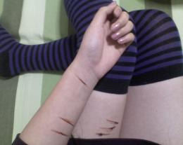在這篇帖子里,一個十六、七歲模樣的年輕女孩自稱出生于1992年,因?yàn)閯偱c男友分手,希望能以死解脫,但又由于怕痛,所以幾次下手都未能達(dá)到目的,所以才把自己自殺的圖片以“直播”的方式貼出來,希望得到網(wǎng)友的鼓勵,以便她能夠最終“成功”。這個女孩在帖子里還寫了一段自殺過程中自己的心理變化:“站在光亮的玻璃鏡前,看著紅色液體再次從身體中流出,突然有種昏眩的感覺,品嘗著那苦澀的血腥味,直至無法觀看下去……”如此血腥的文字,讓人看了不寒而栗。