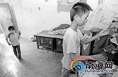 2004年,阿勝的父親患重病臥床不起后,母親離家出走,留下了當(dāng)時(shí)只有8歲的陳德勝和還不到2歲的女兒愛利。從那以后阿勝就承擔(dān)起了照顧父親和妹妹的責(zé)任,給病床上的父親擦身喂藥,哄妹妹睡覺。父親去世后,5年來兄妹倆就住在這間小屋里,在4個(gè)叔叔家輪流吃飯,早早地學(xué)會(huì)了照顧自己。
