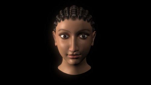 法醫(yī)人類學(xué)家卡羅琳·威爾金森借助電腦技術(shù)復(fù)原出阿爾西諾頭像。“她前額較長(zhǎng),這一特征在古埃及人和非洲黑人中較為常見(jiàn)。這顯示出她的混合血統(tǒng)!