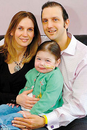 據(jù)英國《每日郵報(bào)》20日報(bào)道,現(xiàn)年5歲的英國女孩杰斯敏·米爾扎日前創(chuàng)造了醫(yī)學(xué)史上的奇跡,因?yàn)樗群笠浦擦税职值母魏蛬寢尩哪I,成為英國第一例由父母共捐器官救活的孩子。目前,小杰斯敏恢復(fù)良好,已經(jīng)重返學(xué)校了。