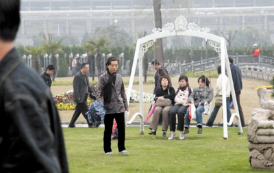 昨天上午9點(diǎn)30分,工作人員撞鐘5響,擊鼓5聲。隨后,祭祀典禮拉開序幕。所有參加表演的人都是濱海古園的掃墓者,人們用詩(shī)歌朗誦、民間舞蹈、民族音樂(lè)等藝術(shù)表演的方式祭祀先人。有人聲情并茂地朗誦詩(shī)歌《古園賦》,用一支無(wú)形之筆描繪春色古園;而年輕的男演員剛健中帶著深情、瀟灑中帶著凝重,用集舞蹈、雜技、體育為一體的奉賢民俗傳統(tǒng)技藝——千年滾燈舞動(dòng)出守望與傳承;二胡、笛子、古箏、琵琶四姐妹重返古園舞臺(tái),精彩演奏樂(lè)曲《真的好想你》、《媽媽的吻》等;上海市老年書法家協(xié)會(huì)會(huì)長(zhǎng)林仲興等4位書法家進(jìn)行了現(xiàn)場(chǎng)秀。