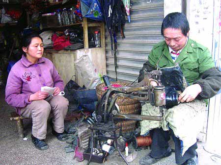 夫妻倆是四川武勝人。20年前,文應(yīng)剛帶著妻子和兩個(gè)兒子趕到南川,以補(bǔ)鞋為生。妻子周德玲在解放路擺攤補(bǔ)鞋,文應(yīng)剛則挑著補(bǔ)鞋機(jī)走鄉(xiāng)串戶。