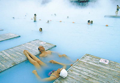 冰島人喜歡露天游泳,當(dāng)然是在溫泉里游。大多數(shù)冰島人出生沒幾個(gè)月,就被父母帶到溫泉學(xué)游泳。露天游泳池是冰島最熱門的社交場所。人們?cè)谶@里會(huì)碰到政客、企業(yè)家和藝術(shù)家等。人們脫去正裝只穿泳衣時(shí),沒有職業(yè)和身份的區(qū)別,還原了人的本色,所以無論談?wù)逻是聊天,每個(gè)人的心態(tài)都很放松,情感更容易溝通。在冰島,溫泉成了青年男女談戀愛的最佳場所,在露天溫泉池里談戀愛不但可以讓戀人們坦誠相對(duì),而且那熱騰騰的溫泉水還可以為戀人們的感情加溫。記者的冰島朋友格魯克說,“冬天來冰島旅游,泡溫泉浴是一項(xiàng)必備的項(xiàng)目! 格魯克介紹說,冰島溫泉浴不象芬蘭浴那樣冰火兩重天,即桑拿到“透熟”的狀態(tài)就一頭扎進(jìn)接近零度的冰水中,刺激太大,非常危險(xiǎn)。冰島溫泉浴主要是采取逐漸升高溫度進(jìn)入三個(gè)漸進(jìn)加熱的程序,這對(duì)皮膚和心血管都有保護(hù)作用。