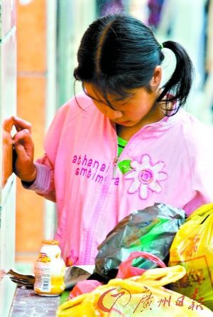 據(jù)村民講,這個小女孩的生活挺有規(guī)律的,她一般早上撿垃圾,下午看書,黃昏賣垃圾,晚上則到網(wǎng)吧樓梯口睡覺。