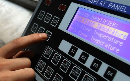 在昨日的試驗(yàn)中,工作人員在26層電梯門上方的煙感器附近點(diǎn)燃打火機(jī),當(dāng)溫度超過58℃后,樓道內(nèi)的語音報(bào)警響起,“各位業(yè)主,本樓層發(fā)生火災(zāi),請(qǐng)不要驚慌,本樓層電梯暫時(shí)停止使用,請(qǐng)業(yè)主改乘其他樓層的電梯疏散!彪S即,26層的電梯按鈕“失靈”,其他樓層電梯仍正常運(yùn)行。