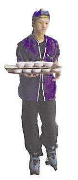 飯店在前臺還提供一個彩頁介紹,上面說飯店每天能供應(yīng)2萬份菜,最多時每天要進1萬多種活海鮮和水果、3.5噸大米、2.5噸肉和2噸蔬菜。最快時,每小時就能做出3000盤菜來。飯店共有2.45萬個盤子,刀叉1.7萬副,僅廚房面積就有740平方米。人們一般來這里用餐都會說成是吃“豪華溜冰餐”,因為飯店面積大,送菜的服務(wù)員都穿著溜冰鞋,在連接25個各具特色的大小餐廳間的回廊里穿梭。