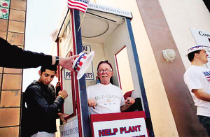 為了讓自己想在白宮草坪上栽種“美國(guó)第一樹(shù)”的愿望能引起奧巴馬的重視,今年4月1日,奧托克又生出了一個(gè)離奇的主意。他竟然要在一個(gè)公用電話亭中生活一個(gè)月,直到4月29日他72歲生日那天才出來(lái)。每天當(dāng)中,奧托克只有上廁所時(shí)才會(huì)短暫地離開(kāi)電話亭。